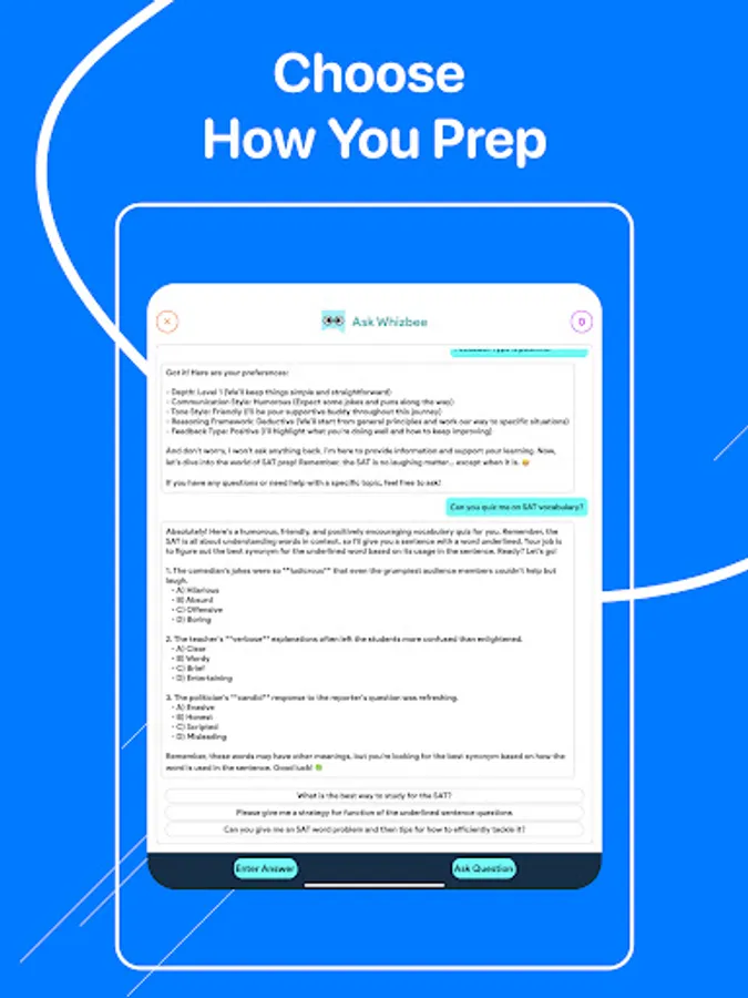 -Your Own AI SAT Tutor, WhizBee, who can answer your questions and quiz you on SAT subject matter!