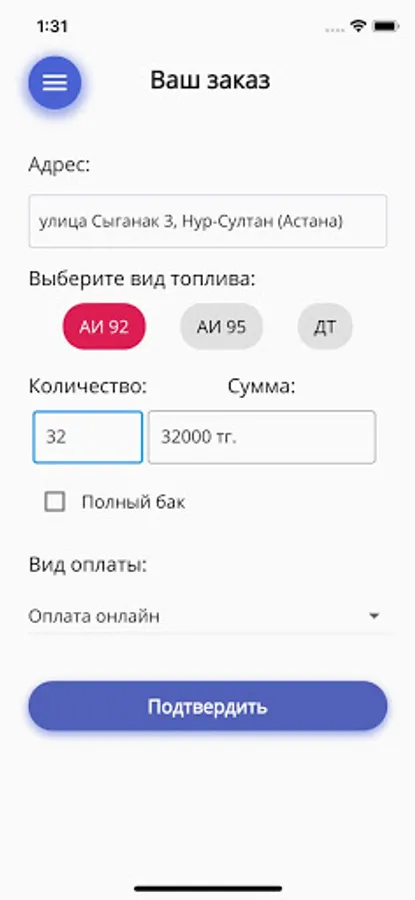 We bring fuel and refuel cars, at gas station prices. Delivery and refueling 0 tg.