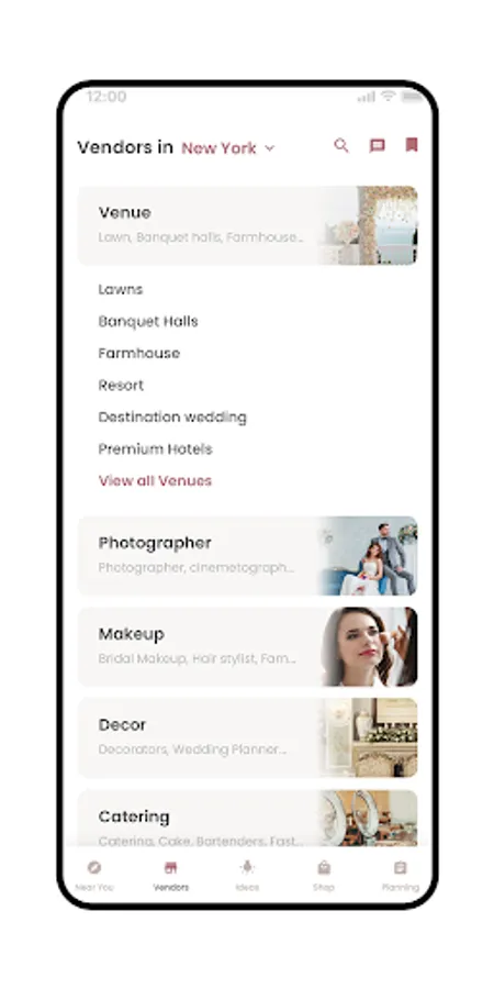 WedPlan is an all-in-one wedding planner app that allows users to select vendors by category. It also lets them create their own custom categories and subcategories.