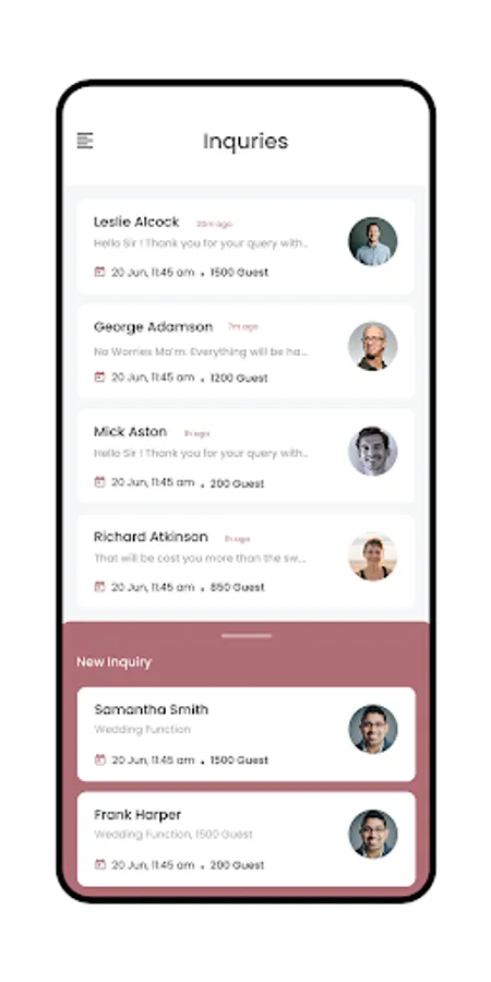 On the other hand, the Vendor app also needs OTP verification. You can check new inquiries and can create a wedding album. About us is the best way to explain who you’re? USPs are highlighted.