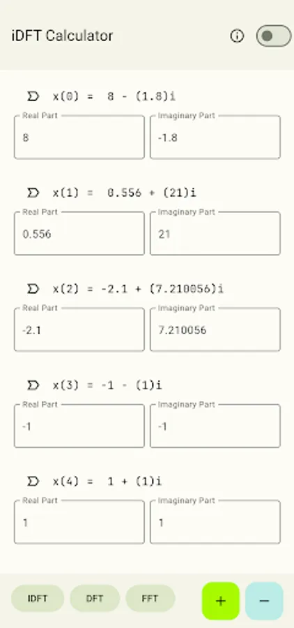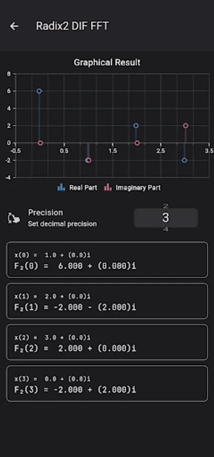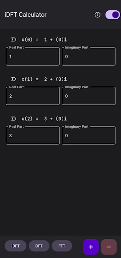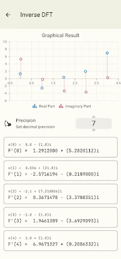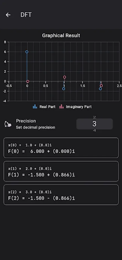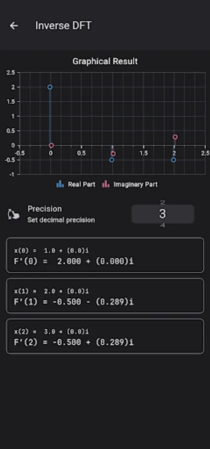 iDFT Calculator and Visualizer is an assist tool for college level students enrolled in digital signal subjects. The aim of this calculator is to help students cross-verify their DFT, IDFT, and Rx2FFT problems.