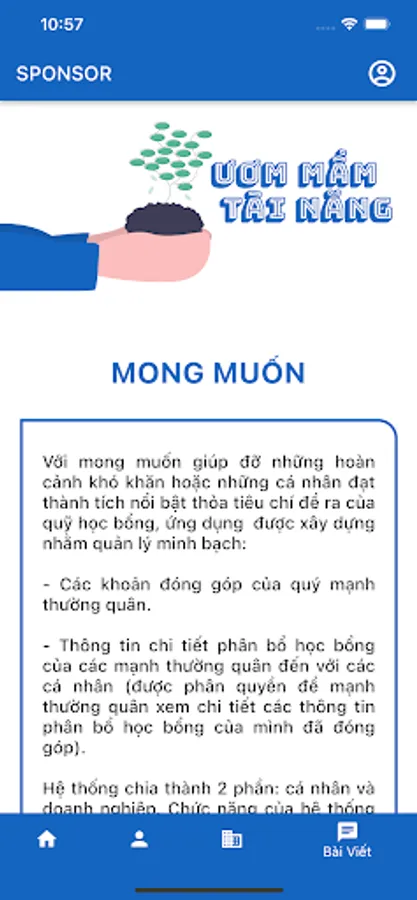 SponsorShip with the desire to help difficult situations or individuals with outstanding achievements to meet the criteria set out by the scholarship fund, the application is built for transparent management: