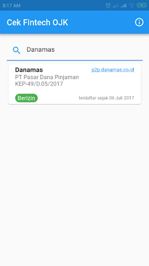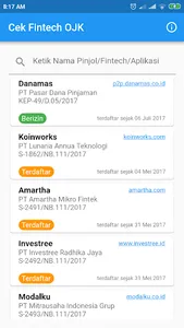 Free application to check name, company, letter number, registered date of an Online Loan / Loan (Investment) / Investment Service, etc. It is hoped that this application can prevent casualties from illegal online loan applications that have not been registered with the OJK. Fintech Check OJK does not have a cooperative relationship with any fintech even OJK or Kominfo. The following application also does not have a working relationship with the Indonesian Joint Funding Fintech Association (AFPI).