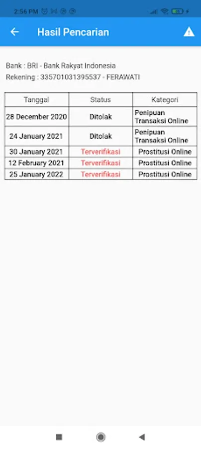 Free application to check fake, fraudulent and dangerous accounts via CekRekening.id. Suitable for those who like online shopping at Toped, BL, Shopi, JD. Account Check is expected to reduce the occurrence of online transaction fraud victims by anticipating it through checking the destination account first. Check Account does not have any working relationship with Kominfo or any party