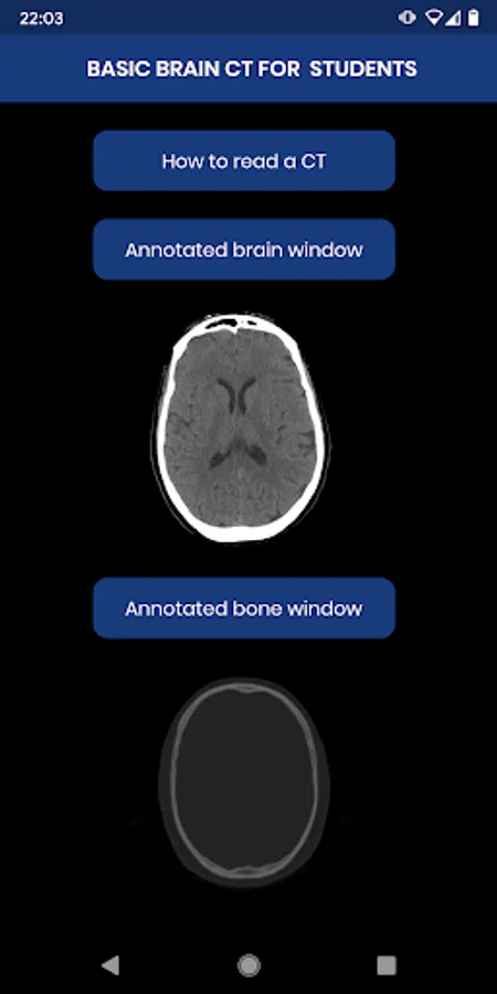 This application aims to help medical students read brain CT scans and recognize the normal appearance of the brain in CT. it is for educational purposes only