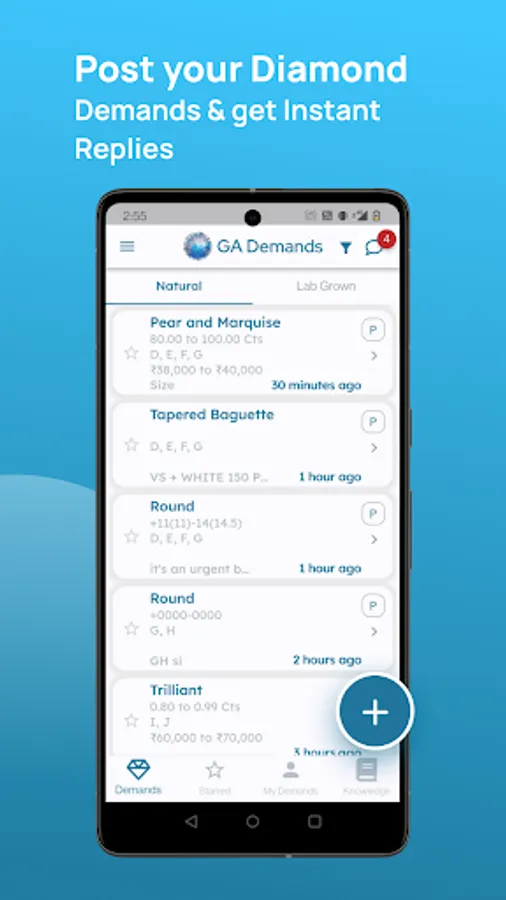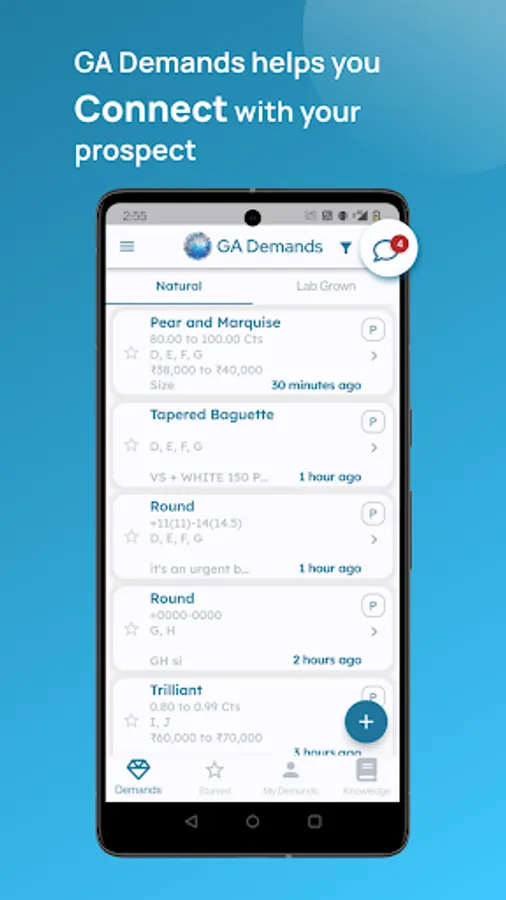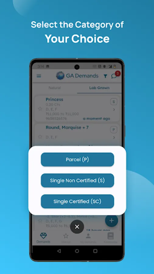 Welcome to the future of diamond trading; welcome to GA Demands- the one-stop solution for diamond traders across India. Whether you're a buyer, a seller, a broker, a jewellery manufacturer, or a retailer, our platform connects you with the diamonds demands for natural, lab grown, parcel diamonds at ZERO cost. Here’s why GA Demands is the go-to app for your diamond trading needs: