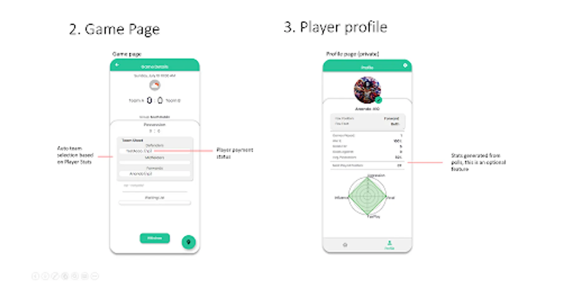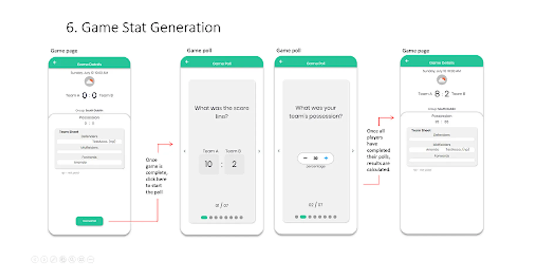 6. Player stat generation through a simple optional poll after each game.