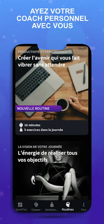 Your daily coach trains and stimulates you with programs, routines and daily meditations.