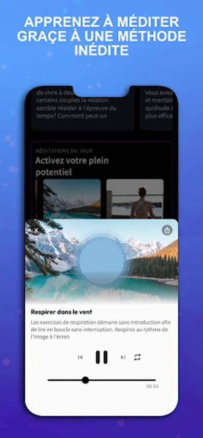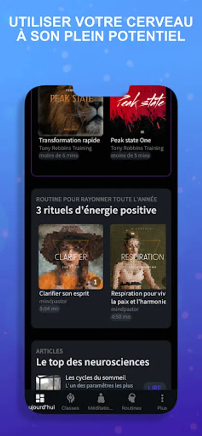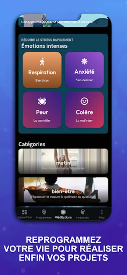 A large library of hundreds of guided meditations and hypno-relaxations awaits you, as well as programs that will transform your life in all daily areas.