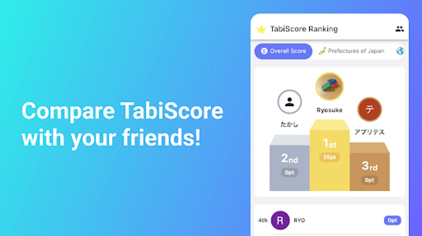 ・The TabiScore is a ranking system that displays your TabiScore by adding your friends.