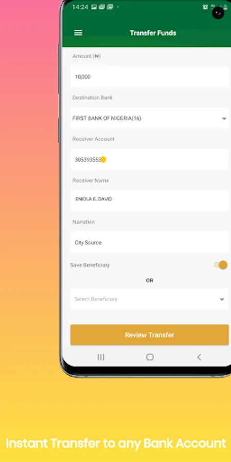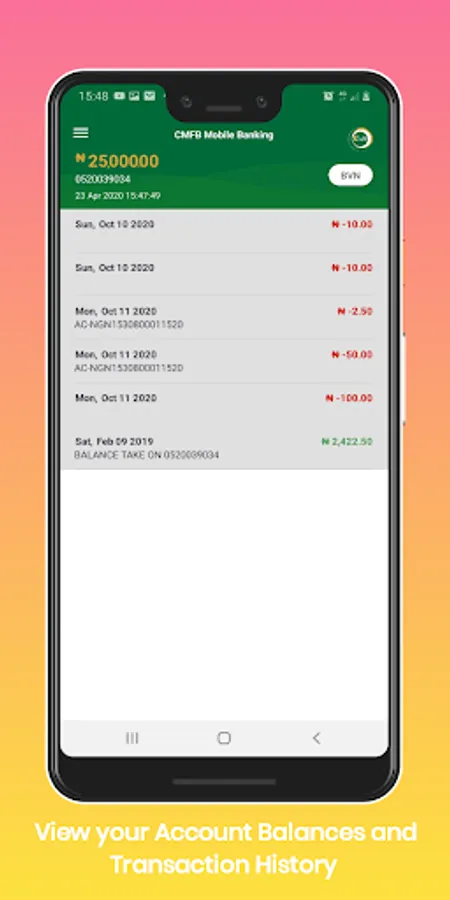 • Check your account balance in realtime; transfer money to any account and buy airtime all at the comfort of your space.