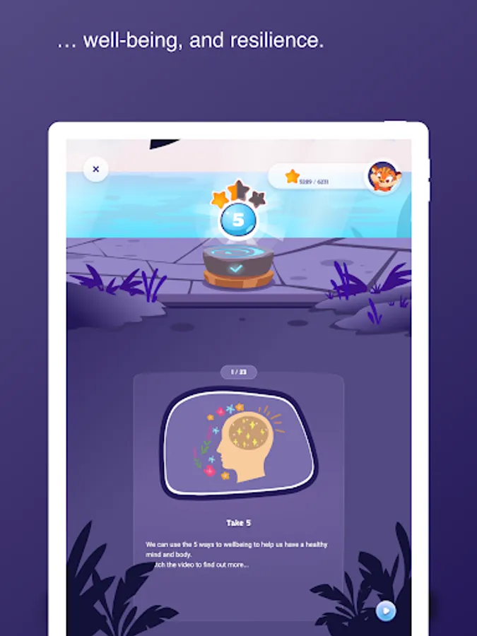 The OUR Generation app contains gamified content that will help children and young people improve their emotional resilience and build peace in their communities. Inside there are 5 levels with challenges that include simple games and puzzles, videos, and breathing techniques. Stars are earned by completing these challenges.