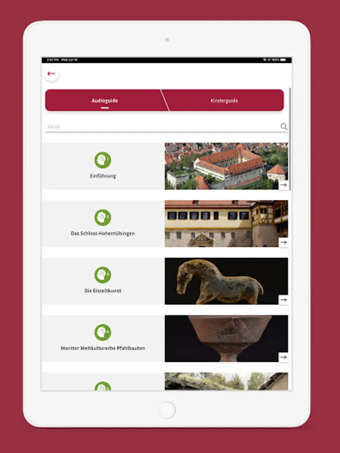 For your local visit to Tübingen, you can select a highlight tour in various languages in the app. Choose between a German, English or Chinese audio guide tour. For children there is a specially developed audio tour with exciting stories from the Ice Age, Old Egypt and Ancient Greece.