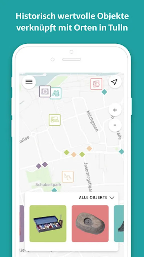 In the VIRTULLEUM the Tulln city history is conveyed in different ways: Analogue by means of historical objects and digitally via App: