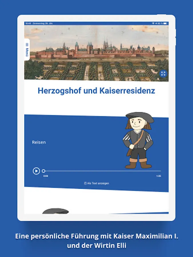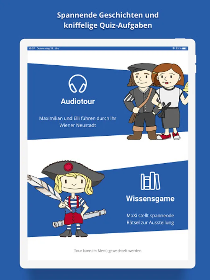 Audio tour and knowledge game: discover the Museum St. Peter an der Sperr with the app as a digital companion: Emperor Maximilian I and the landlady Elli take you by the hand and guide you personally through the exhibition "tell new city" on the audio tour. Exciting stories and background information are waiting to be discovered.