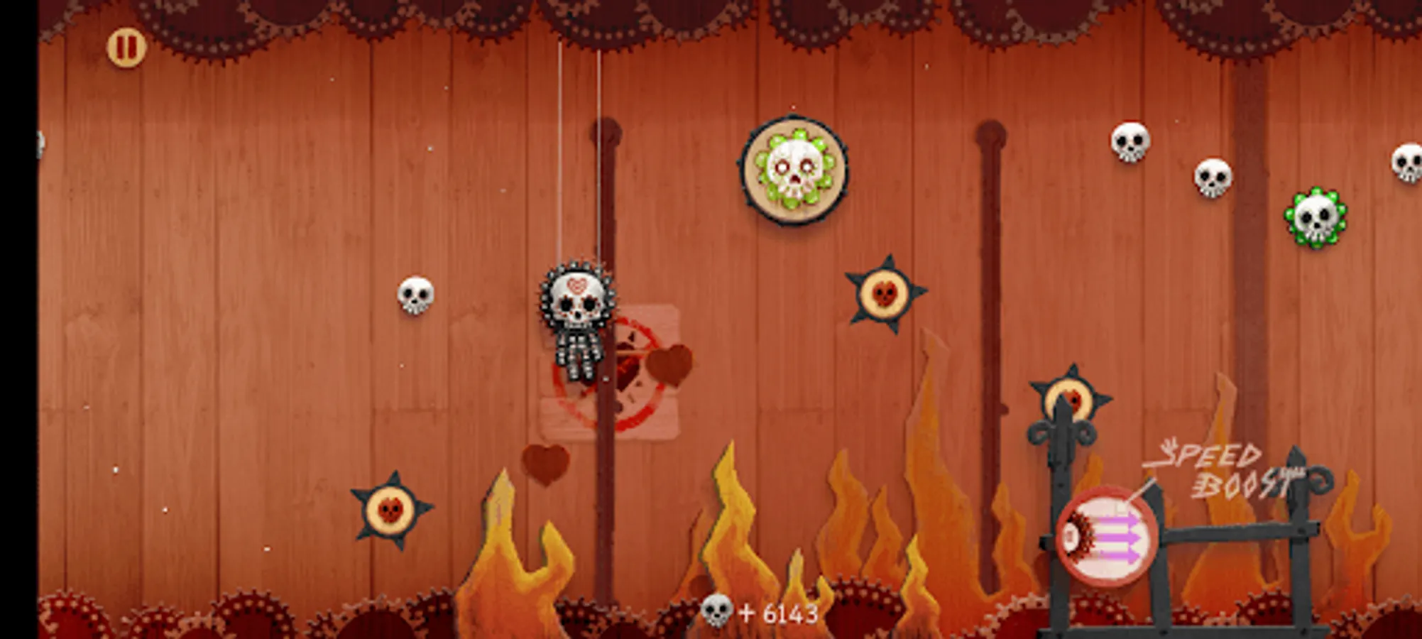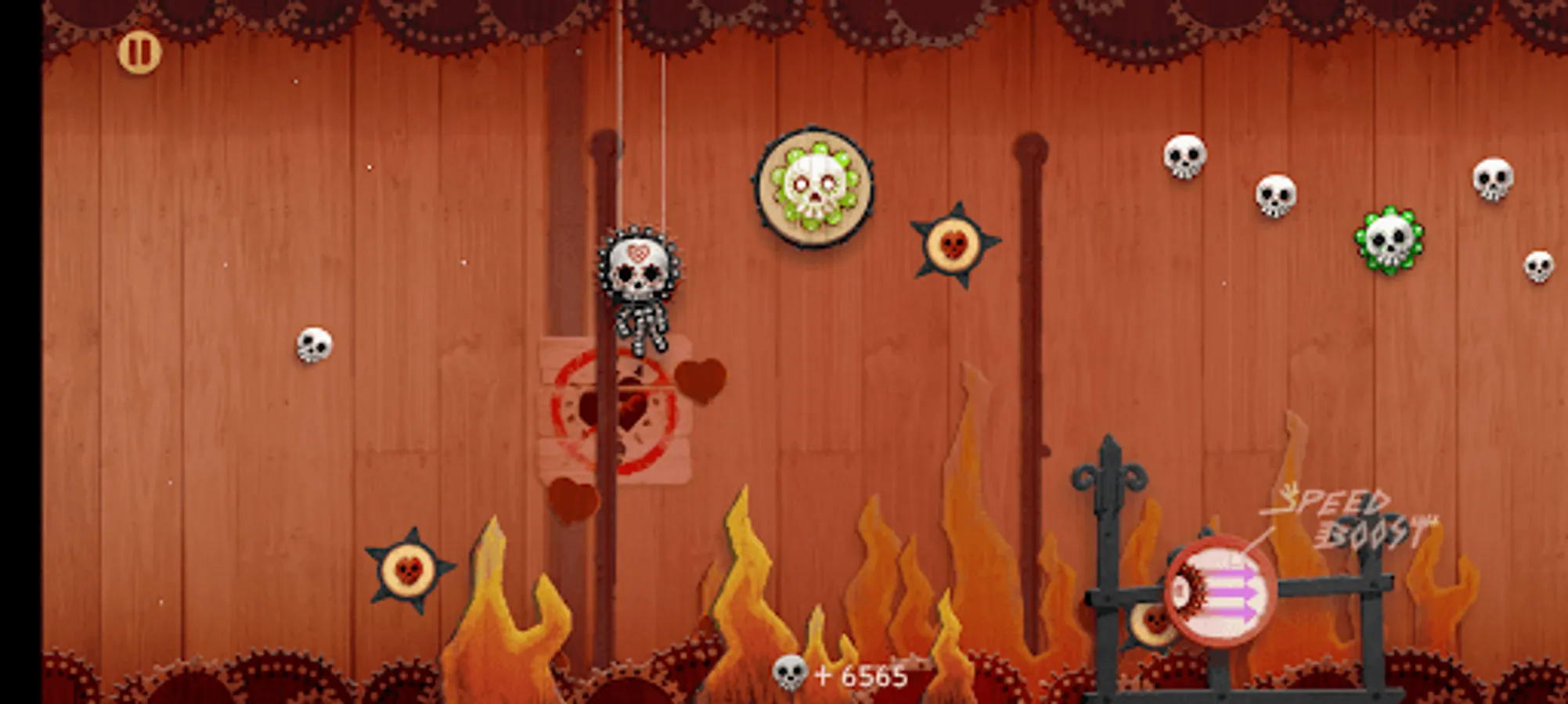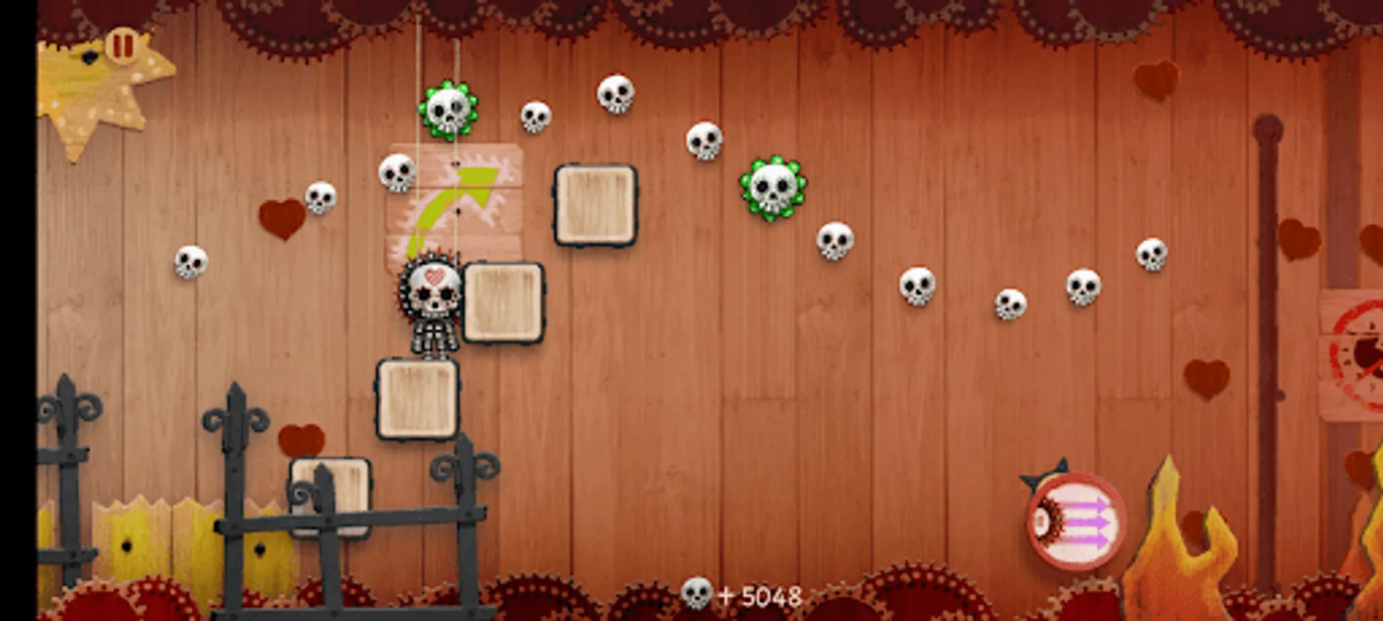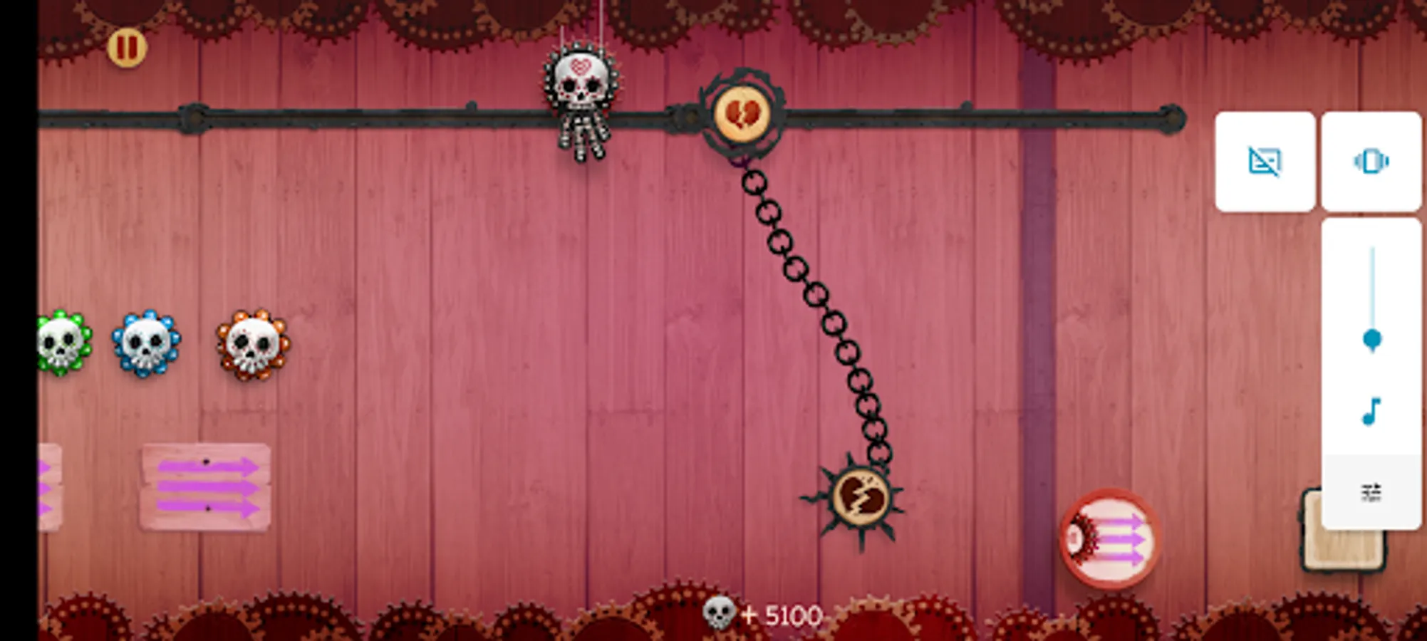 Welcome to SkullSlide, the addictive puppet-style slide scroller where you play as a puppet character dangling from a string. Your mission is to collect skulls as currency to unlock new characters and checkpoints. The unique art style, inspired by traditional puppet shows, adds to the immersive gaming experience.