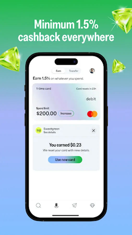 • If the merchant you’re shopping at doesn’t appear in our app, simply generate a 1-time card and pay anywhere Mastercard is accepted and earn 1.5% cashback instantly.