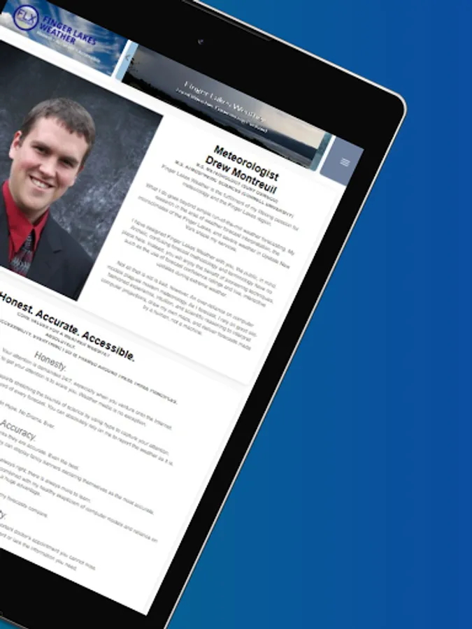 With over 10 years of daily weather forecasting experience, degrees in meteorology from SUNY Oswego and Cornell, and a lifetime of experiencing the weather in the Finger Lakes firsthand, meteorologist Drew Montreuil brings an unparalleled expertise to the unique weather of the Finger Lakes.