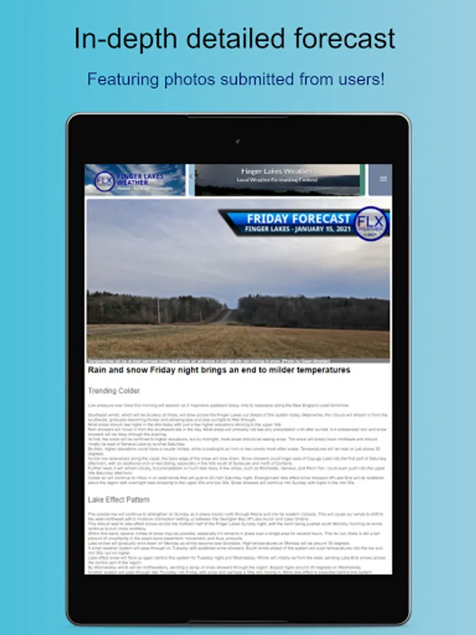 Finger Lakes Weather is proud to now bring all of its web features to your mobile devices - bringing accessibility to local weather like never before!