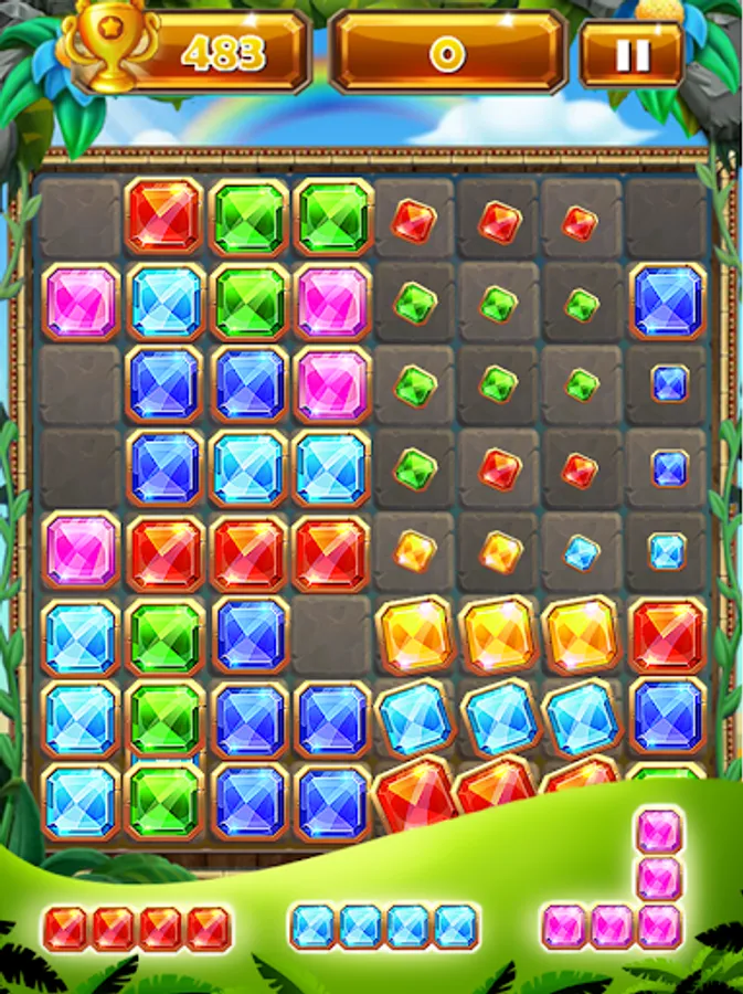 • Try to fit them all in the row or column. Then the block will be clear and you get the point. Game will be over if there are no room for any the shapes below the grid.