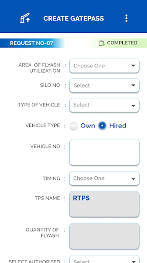 This application is only for registered SSI locations of Karnataka Power Corporation Limited. to allow the creation of gatepass for drivers to carry ash from plants