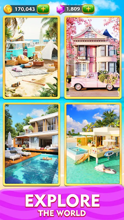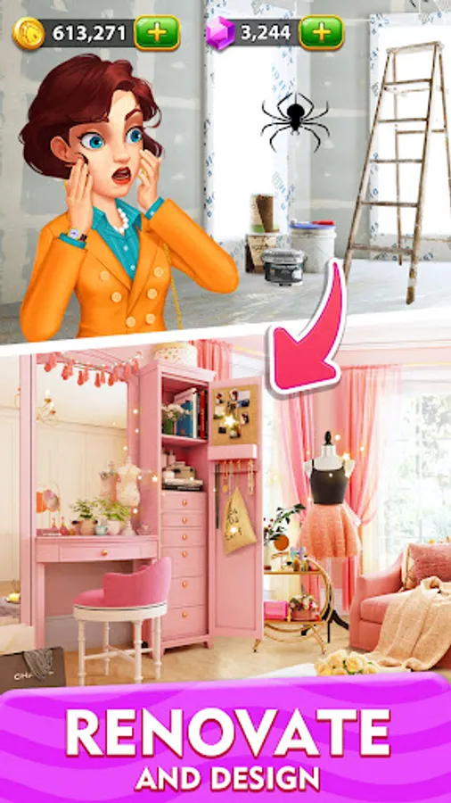 - Different scenes are available for you to decorate, villas, kitchens, swimming pools...and will be updated regularly, each scene will make you fall in love with this game.