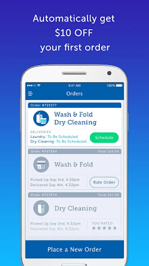 1) Becoming fly: Download the app, set up your account, and schedule your first pick up to get $10 off your laundry and dry cleaning needs. Choose between on-demand or schedule a time during our laundry pick up and delivery hours 6AM-Midnight, 7 days a week.