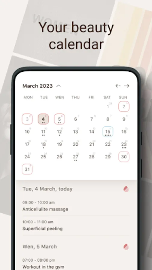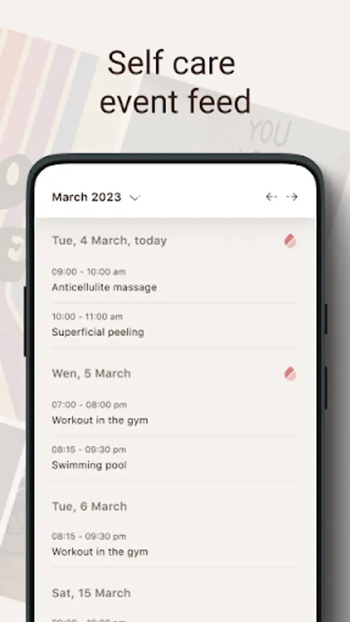 With DEVÁ, you can create a calendar of events and record important dates such as visits to the cosmetologist, skincare procedures, doctor appointments, workouts, and regular check-ups. Keep track of your achievements and progress.