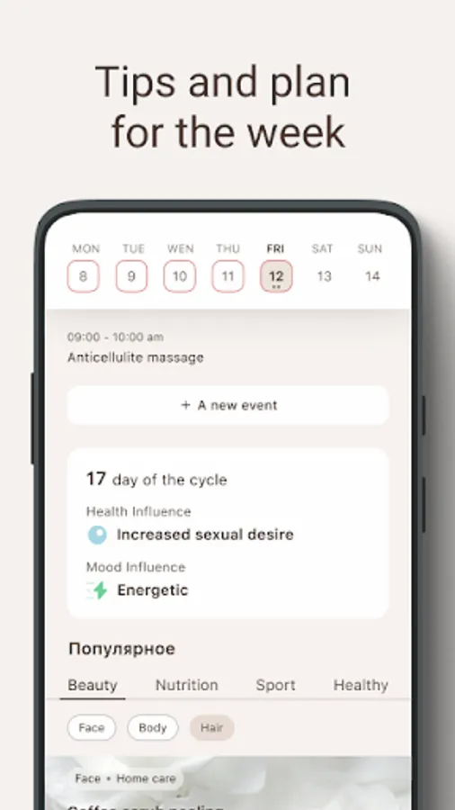 Our app is designed for those who value a healthy lifestyle and want to keep track of their health and appearance.