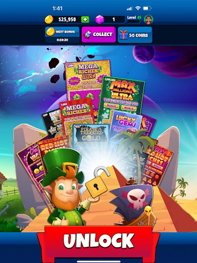 Join Lucky the Leprechaun on an exciting journey to reclaim his fortune. Dive into a world of thrilling scratcher games packed with exciting missions, hefty rewards, and a diverse variety of scratch cards. Scratch Quest is a must-have for casual gamers and lottery enthusiasts alike.