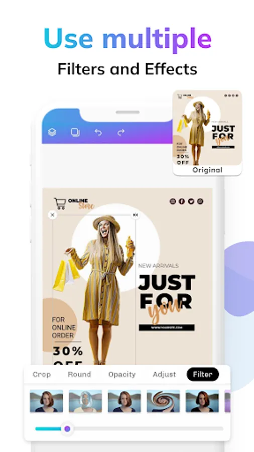 - Create promotional posters, advertisements, offer announcements, and cover photos on the go with unique backgrounds, texture, effects, 1000+ fonts, 1000+ stickers and get the attention you want.
