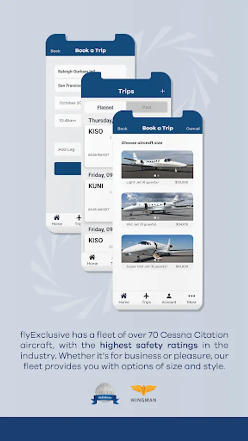 At flyExclusive, JetClub, Partners, and Fractional members can feel safe knowing their private jet experience lives up to everything that idea conjures up: a world-class flying experience every time you fly. With our app, Members gain exclusive access to the complete luxury flight experience.