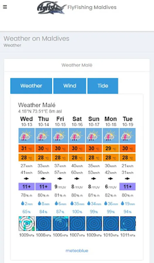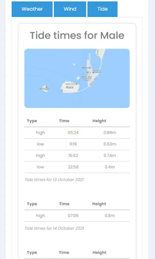 It also has a built-in advanced weather forecast with wind and tide in the Maldives.