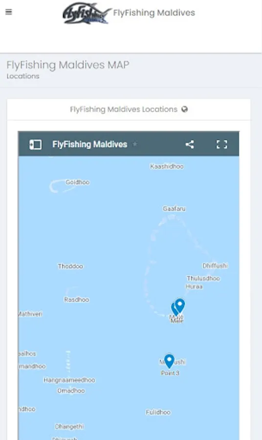 The app helps you to view the locations for FlyFishing on Maldives Atolls.