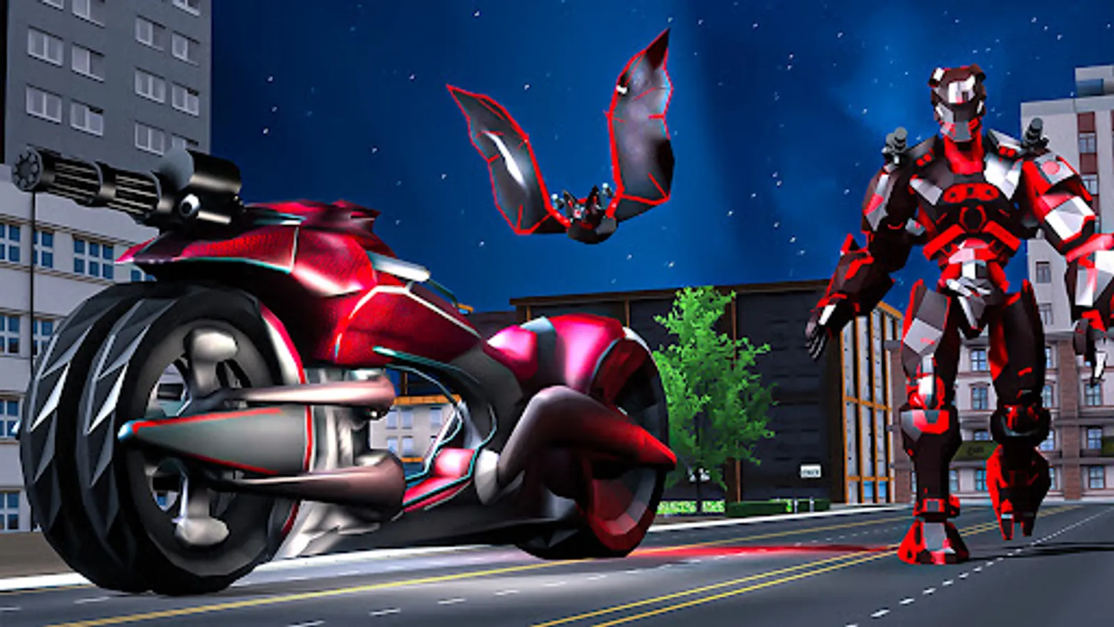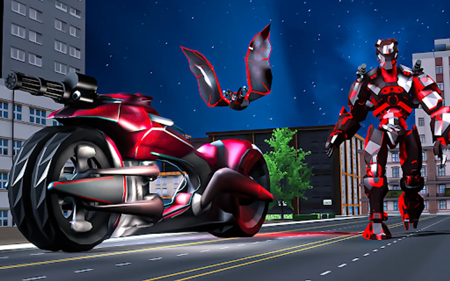 You can also play as Robot Bat in these futuristic bike transformation games. Crime City has real robots and bats in which the crime fighters are ready to face the super villains in the city battle. Bat Robot Games is the new motorcycle game with heavy motorcycles fighting evil robots and bat flying missions in robot warfare on a city scale. Experience a futuristic game in one of the best flying robot games that will transform the bat robot and defeat the robot bike with new weapons across the city.