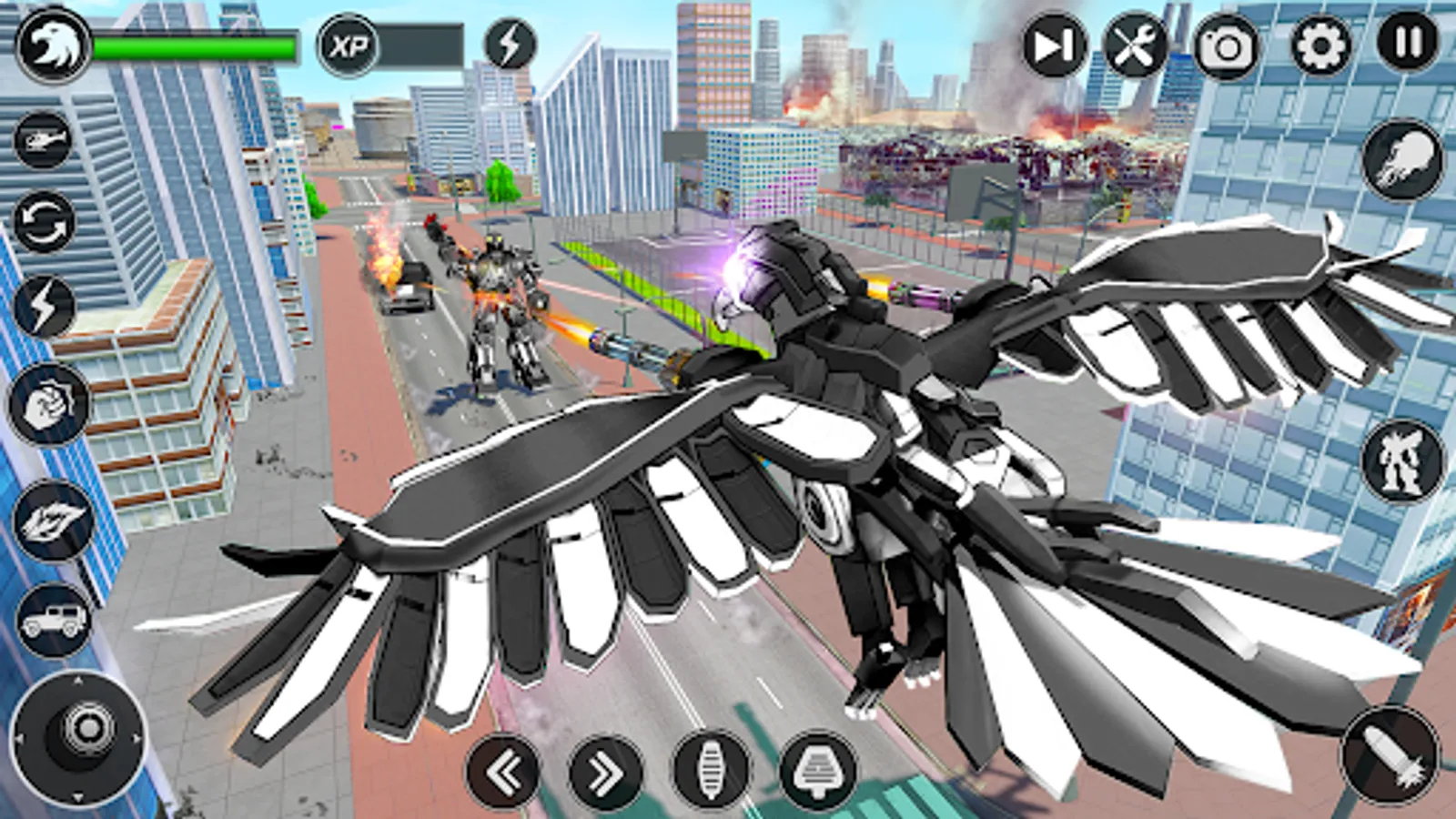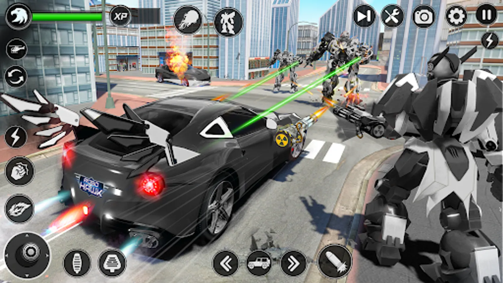 What are you waiting for? Download the flying robots Flying hawk Robot car Game and enjoy the warrior thrill of flying robot games and real robot shooting games.