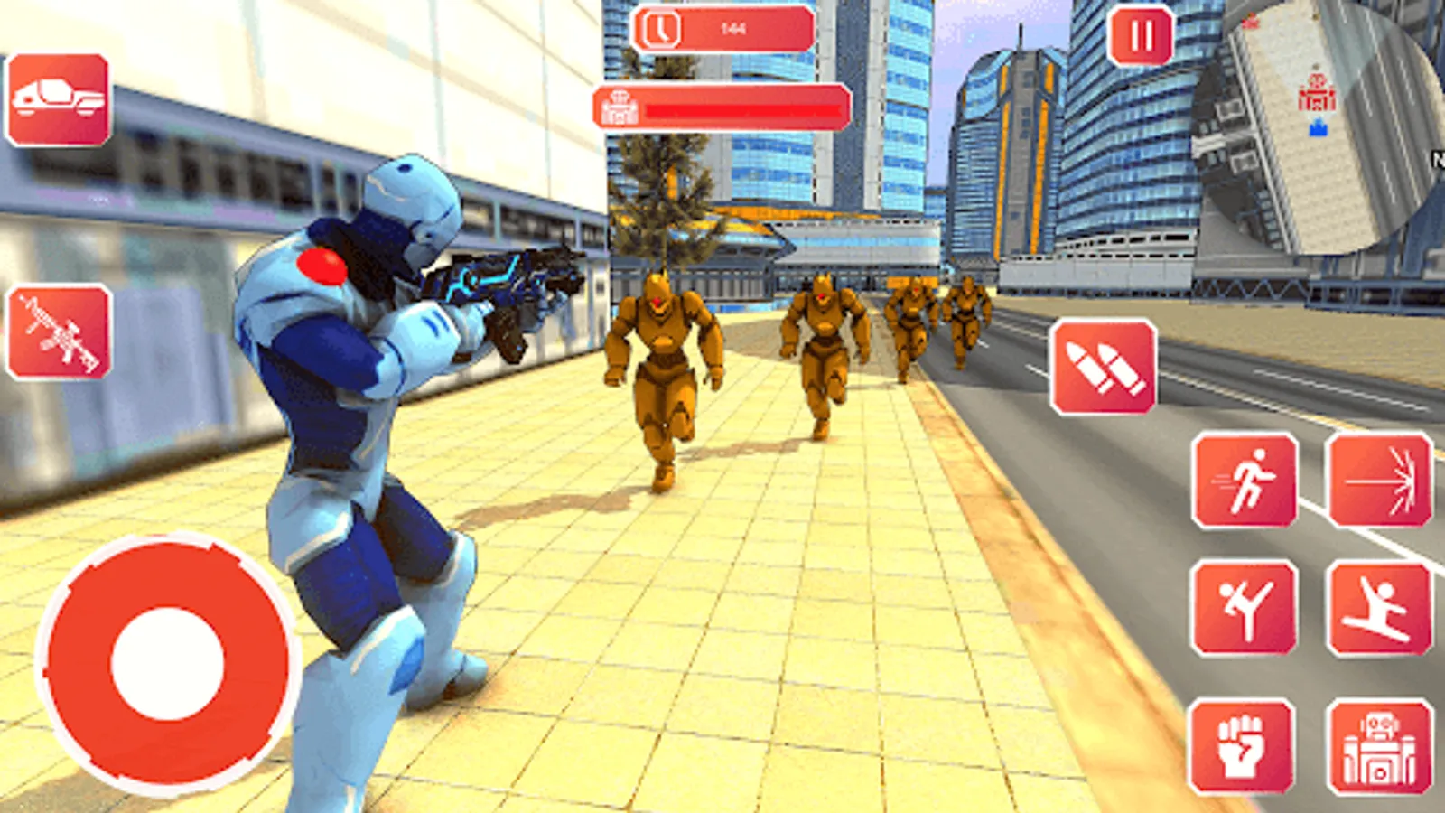 The robot transform task is to protect the city from the enemy’s robots have amazing transformative powers of train shift and car robot games this combination became unique. Evil robots are dangerous and powerful from vicious powers but don’t worry about your shooting robot skills because hero robots save the civilians from vicious robots. The battle between flying gigantic robot and war robots is take place in the city robots. Now it depends on you that you defend the people from dangerous heartless robots.