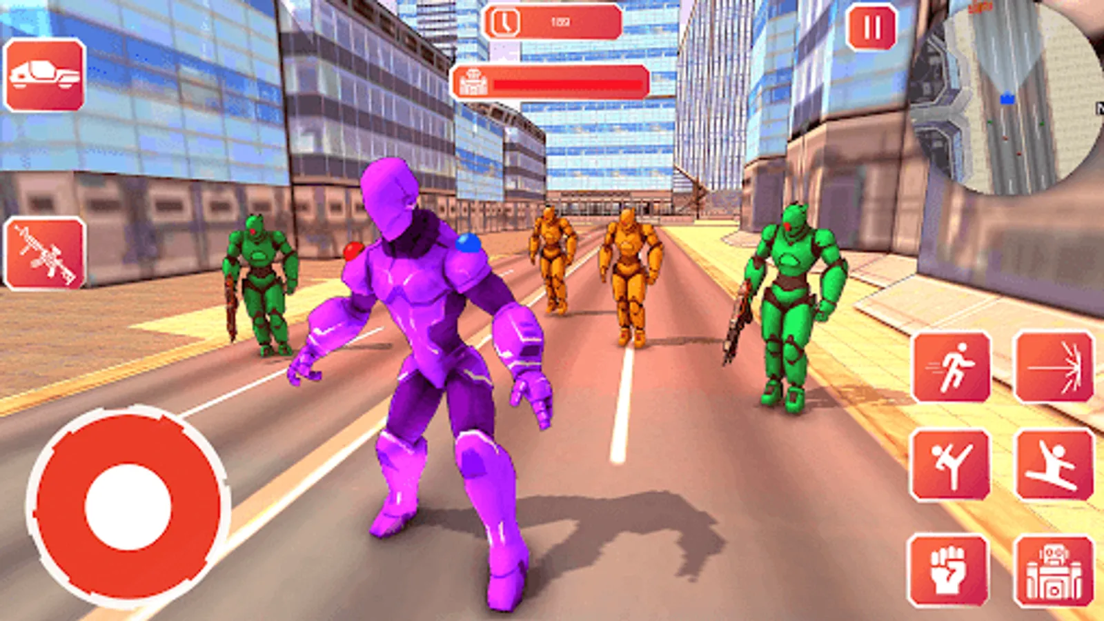 In this muscle robot car and hammer robot game, you have to chance to complete control of the robotic city against the angry enemy robots. There are cars and robots that provide the ability to fly to reach the war robots. Flying jet robots and car robots are combined into transform games to protect the city from the gangster robots. Enemy robot injured the people with the evil powers on the other hand the mega robot shoots the vicious robot and save the life of robot city people with our robot car. In flying police helicopter cars transform robot games and mega robot car games.