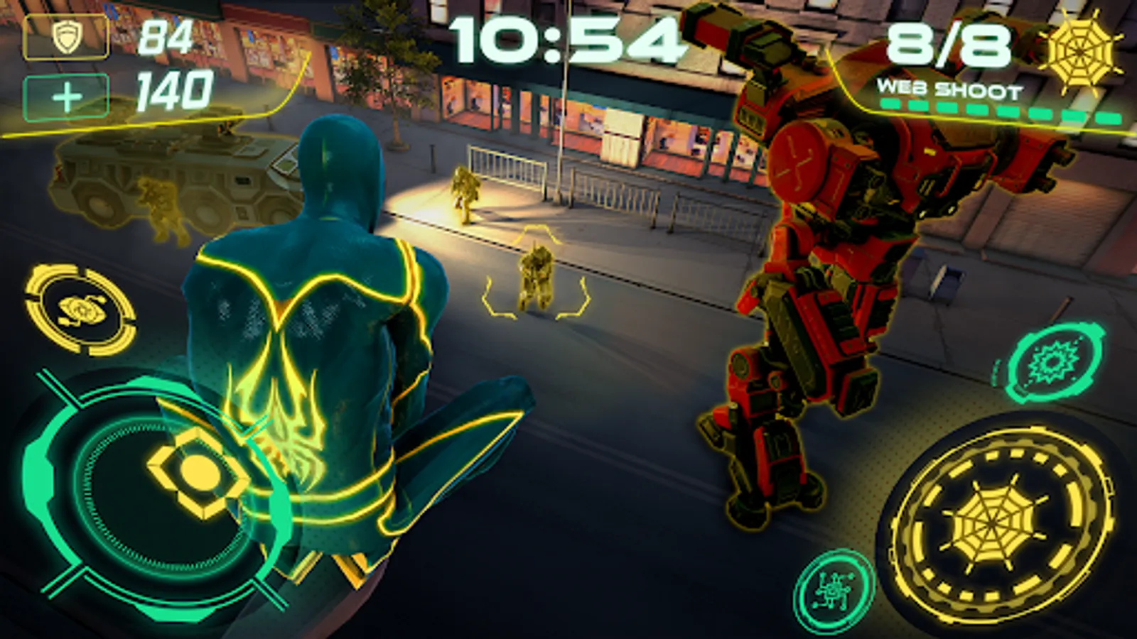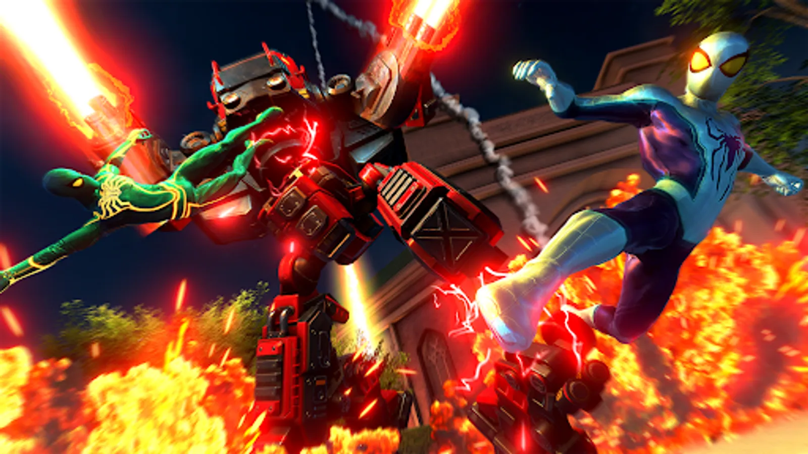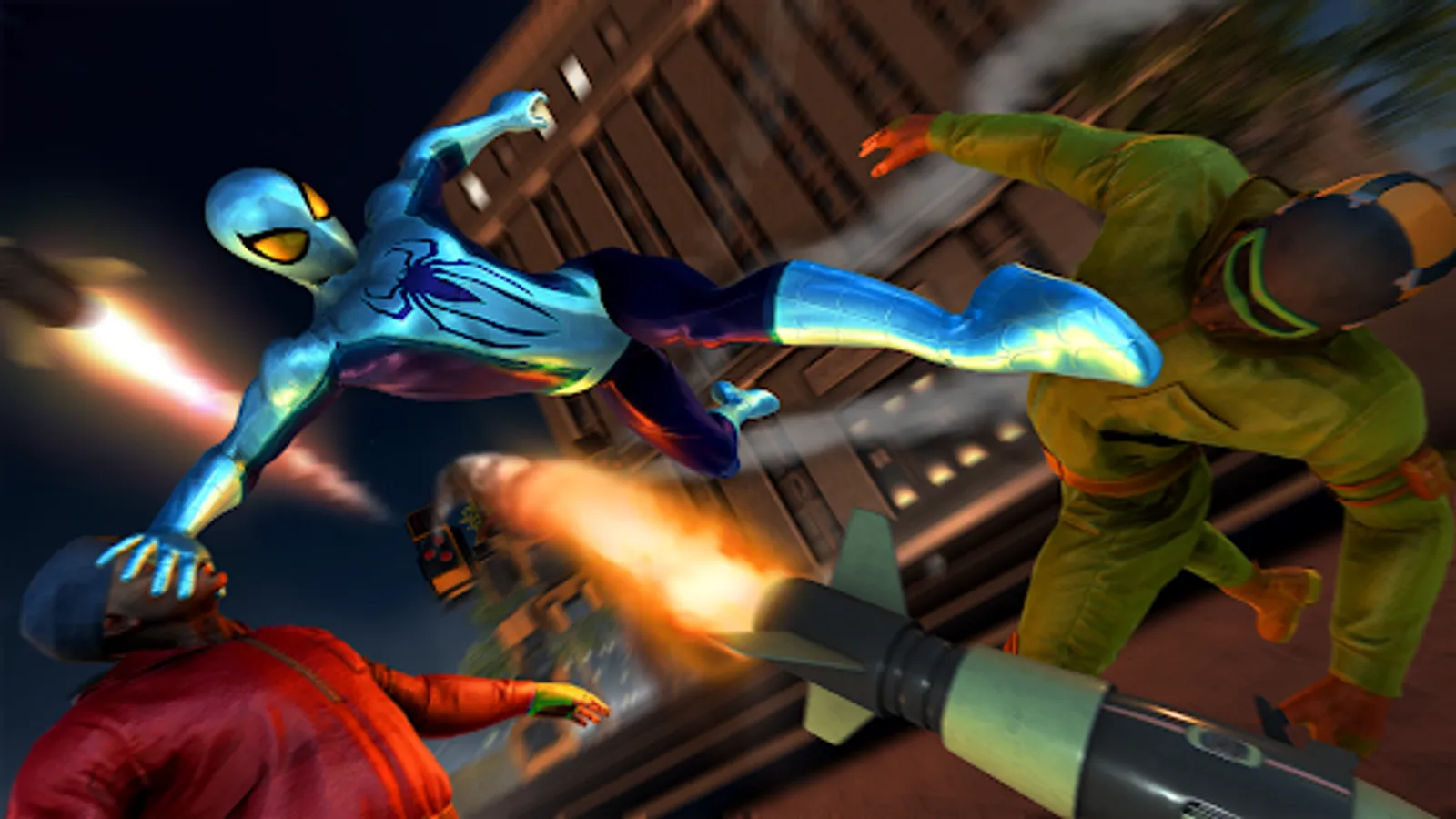 Play the Flying spider-hero sim game, and become the best flying spider rope superhero in a modern city environment & Be a Flying police amazing spider games and spider superhero games in this superhero flying rescue games. Become master of spider hero game as a city rescue mission to save the city from crime gangster & enemy robots by getting a feel like flying spider-hero game and flying spider superhero game. Play iron spider games, and use super lasers from the eyes, throw rope and climb on the buildings and walls, with flying spider super smash jumping effects of power spider hero games. In flying superhero spider games, start your flying hero duty of rescuing citizens from gangster attacks and take smart attempts of flying spider superhero rescue missions. In flying spider-hero games, as people are unaware of flying drone robot attacks and powers, as a flying spider-hero man with flying superhero skills uses all the spider superpowers to fight with multi robots and city gangsters & prove to be a grand police speed hero of the spider superhero game.
