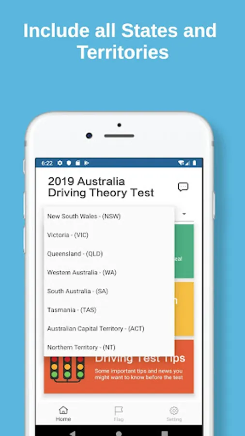 You can choose the state that you are going to take the test from. Each state has a DIFFERENT question bank!