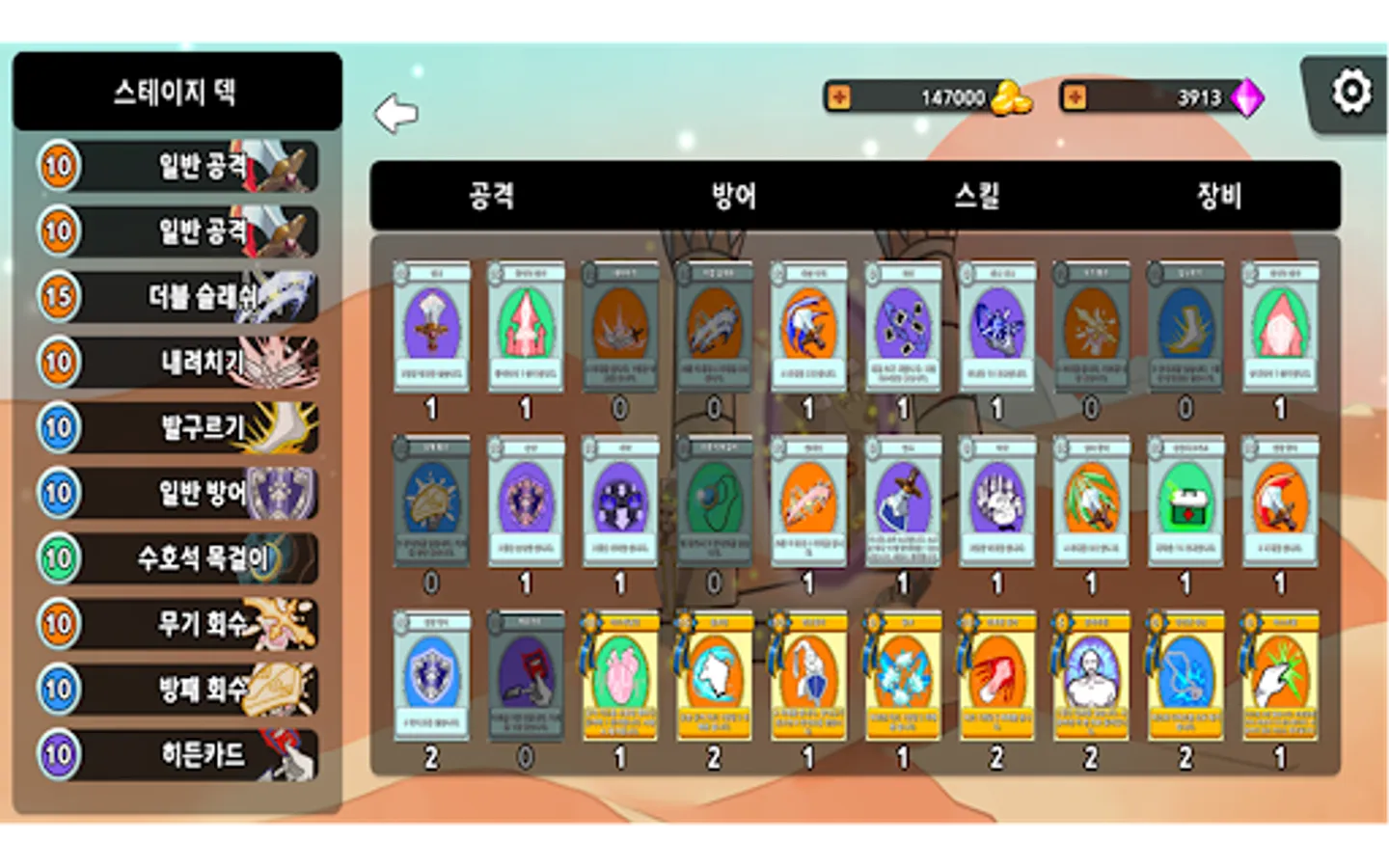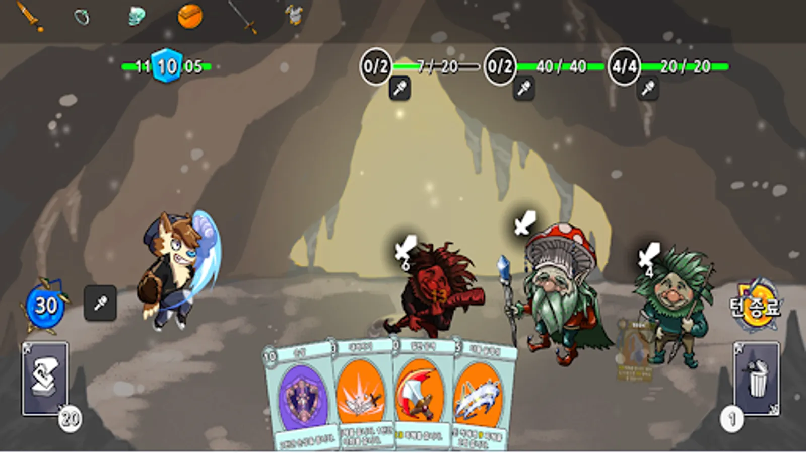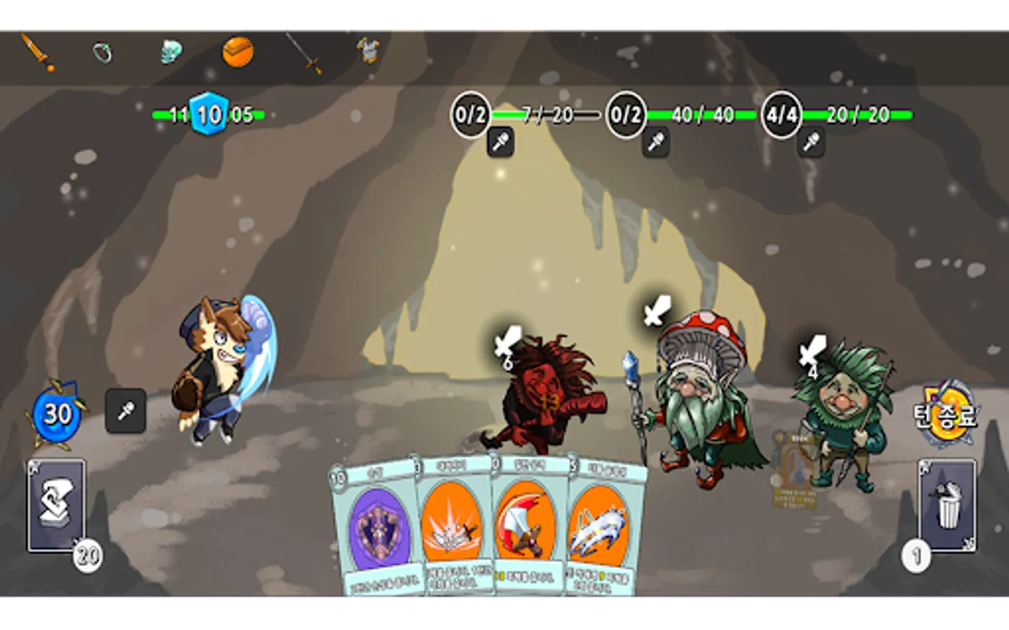 - 카드를 사용해 직접 움직이고, 공격하고, 스킬을 사용해보세요.