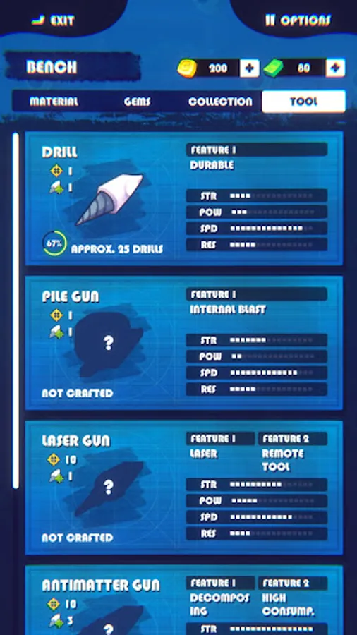 Different bricks and blocks require different tools to dig through. Learn and experiment with the 7 digging tools available in the game.