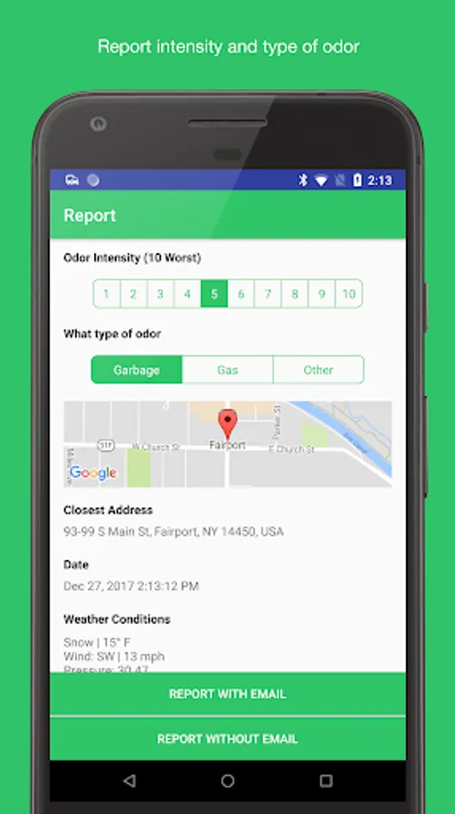 Fresh Air for the Eastside is a utility app to help facilitate reporting the odors coming from a local landfill in Perinton, NY.