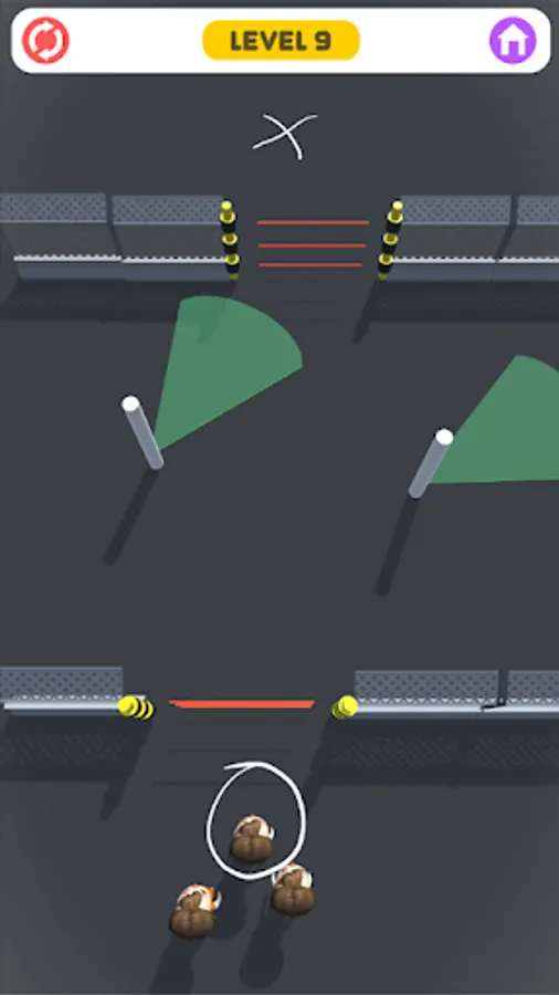 * if 3 of prison does not reach across checkmark then level getting failed means prison are Busted! reload and play again. you have to think again and make an escape plan.