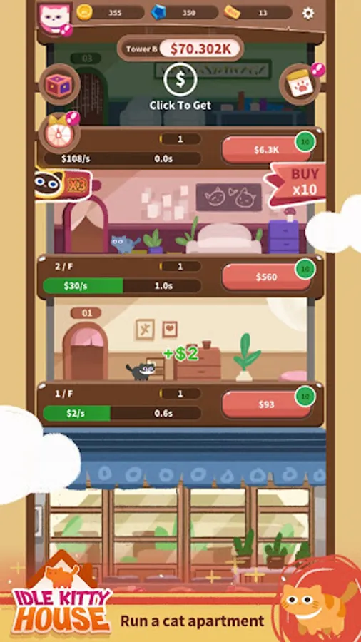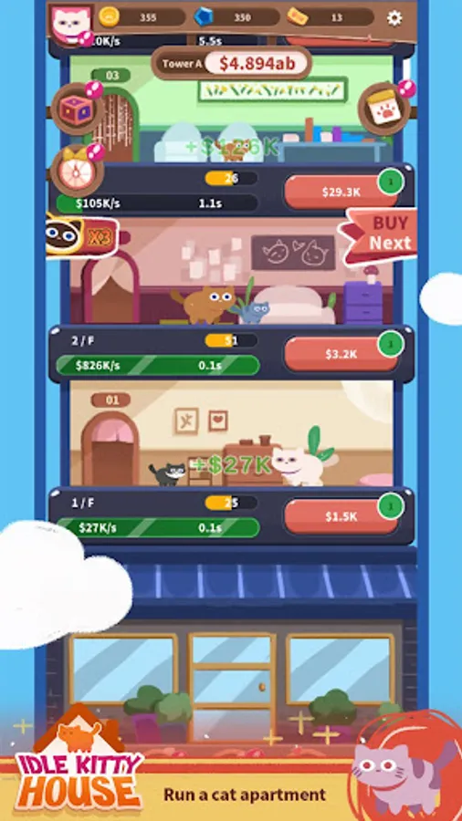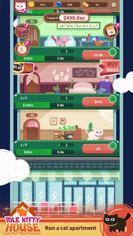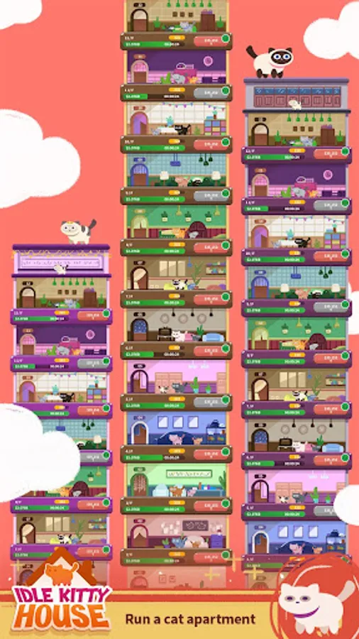 Idle kitty house is a cute and interesting development game. Become the owner of the cat in the cat world. The owner can unlock and build his own cat world in the game. Continuously upgrading the cat's floor can increase the income. The higher the level, the faster the income. Faster, ask the cat housekeeper to turn on the automatic production mode, which is faster and more convenient without the owner's operation. Each cat can be clicked to interact, and cats of different forms will have different reactions when interacting with their owners. Build the most powerful cat world together with your little friends!