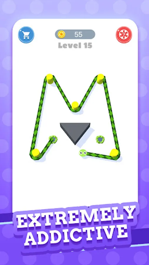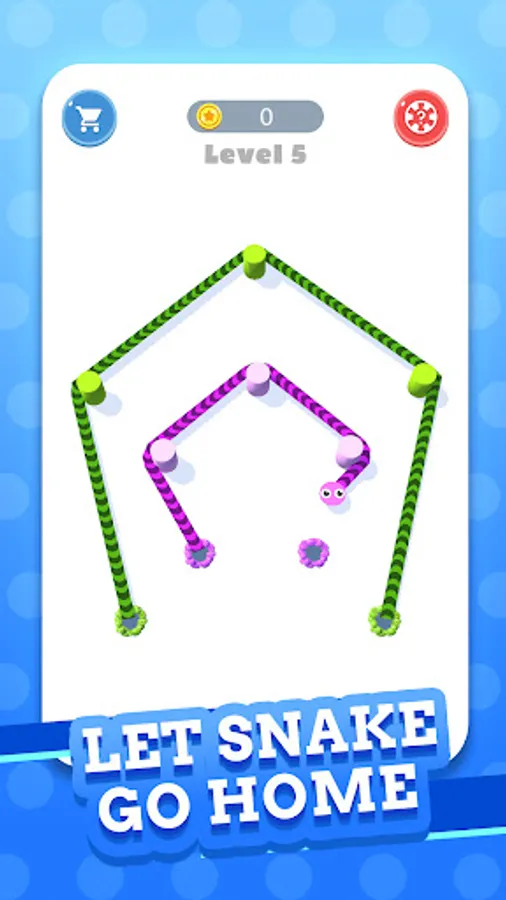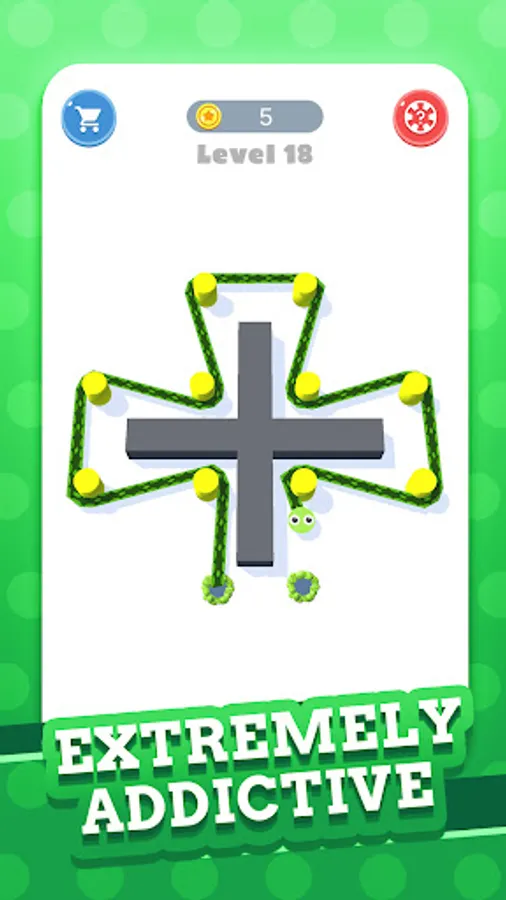 At the beginning of the game, the fingers control the head to draw a line, and connect the two ends point to point. You need to wrap all the cylinders of the same color, and bypass other color cylinders and obstacles, and connect the two ends to pass the level.