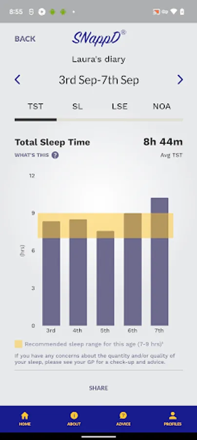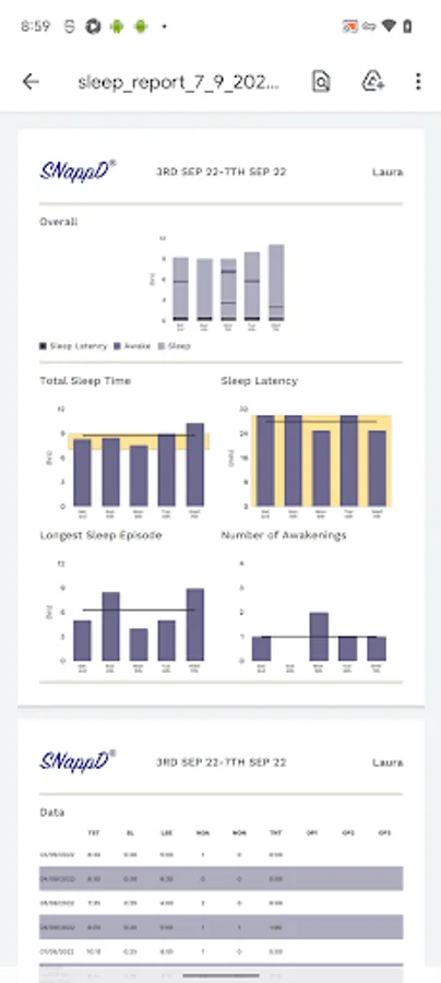 SNappD is a simple-to-use sleep and nap diary app that allows sleep statistics, and the impact of poor sleep, to be recorded. Records demonstrating sleep behaviours can also be forwarded to a medical professional.