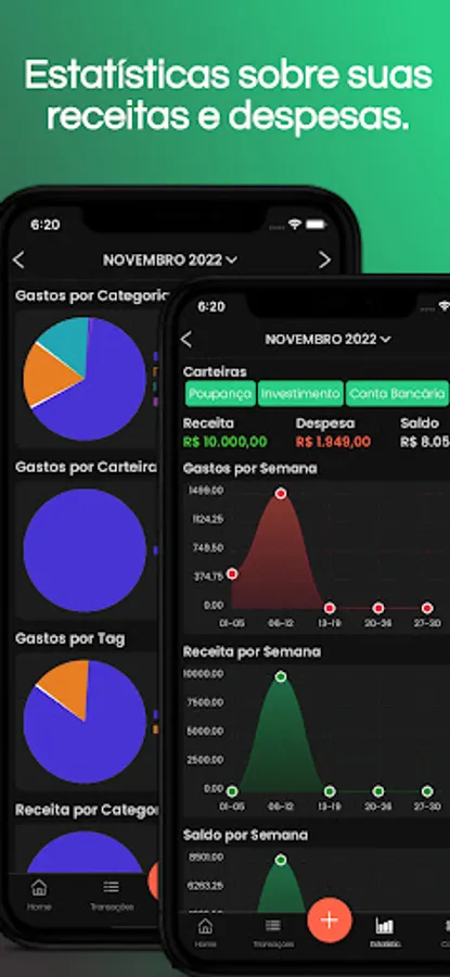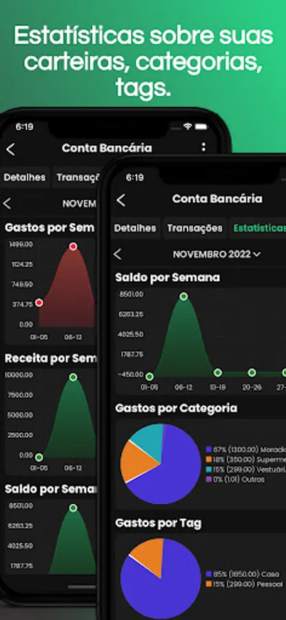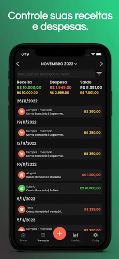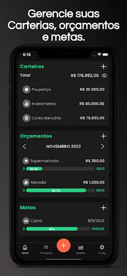 In the app, you can control your expenses and earnings, separate your money into portfolios, create budgets for categories, create financial goals, create expense/income categories and much more...