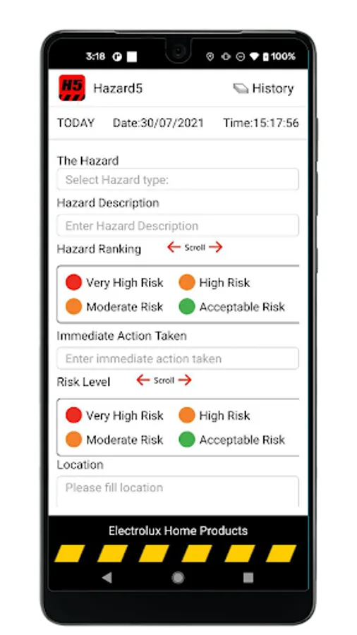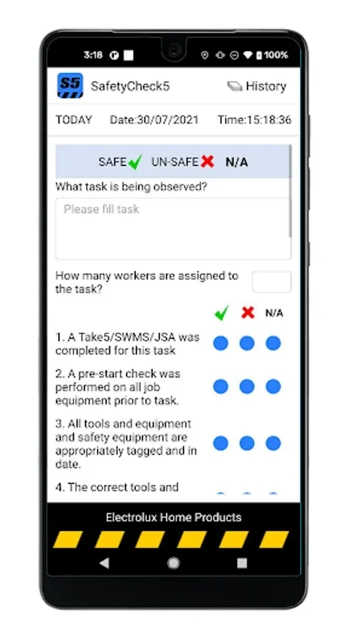 Electrolux Take 5 Safety App, to improve safety reporting in the workplace.