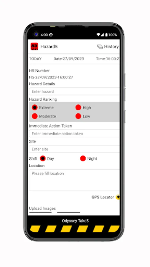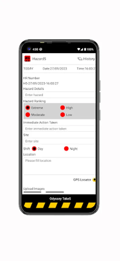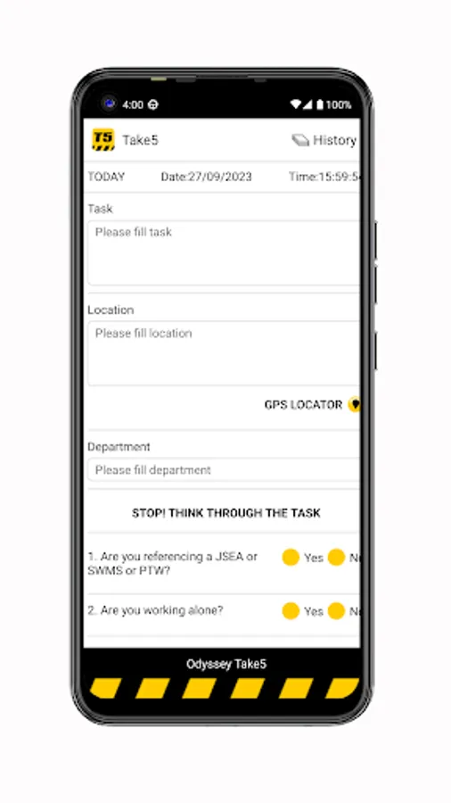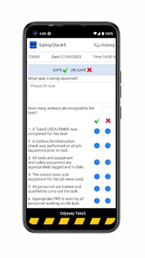 Odyssey Take5 app, Safety Reporting for Employees and Contractors.